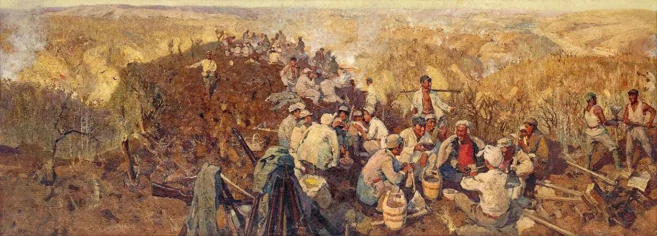 从1959年到1964年,画家靳之林耗时五年,以八路军359旅艰苦奋斗、自力更生的南泥湾精神为主题,创作了油画《南泥湾》。该画描绘了在黄土群峦衬托下,八路军战士和当地百姓在荆棘遍布、荒无人烟的南泥湾自力更生、艰苦奋斗的真实场景。这幅作品成为中国美术史上的经典作品之一,被誉为“新中国现实主义美术里程碑式的作品”。