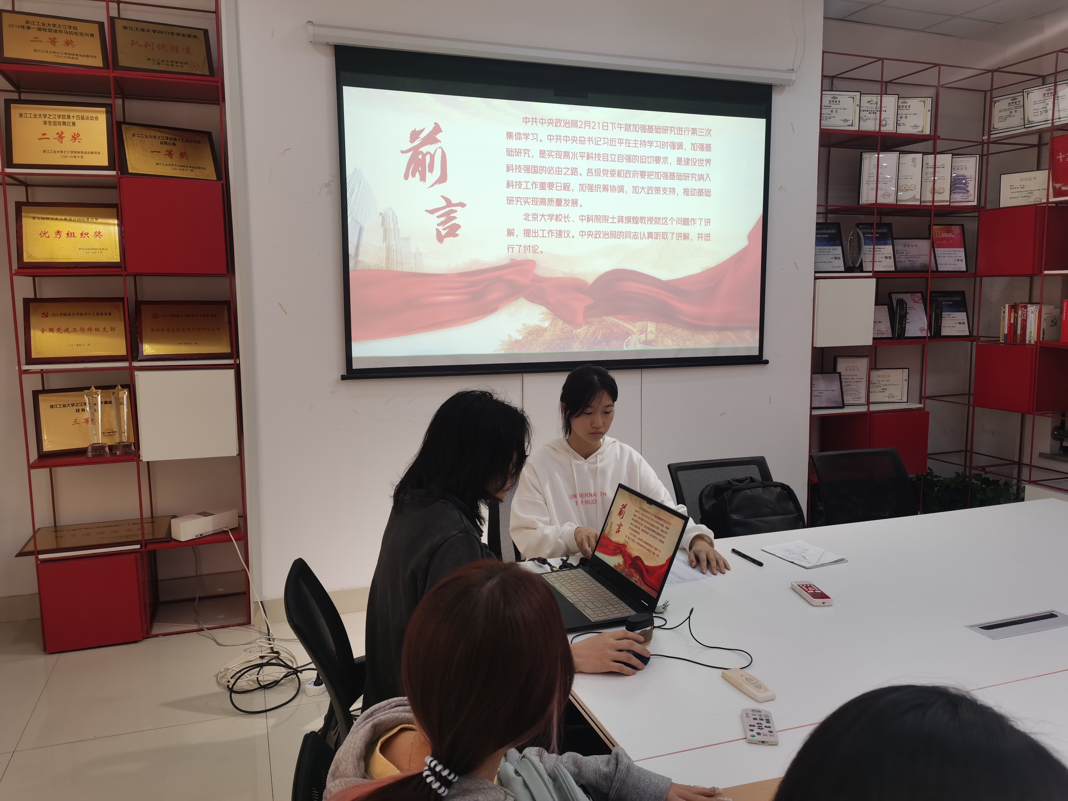 学生工业设计党支部于3月9日在第三空间召开了学习会,学习会由支部副书记李晓蝶主持召开,此次学习会线上线下同时进行,主题是:切实加强基础研究,夯实科技自立自强根基。