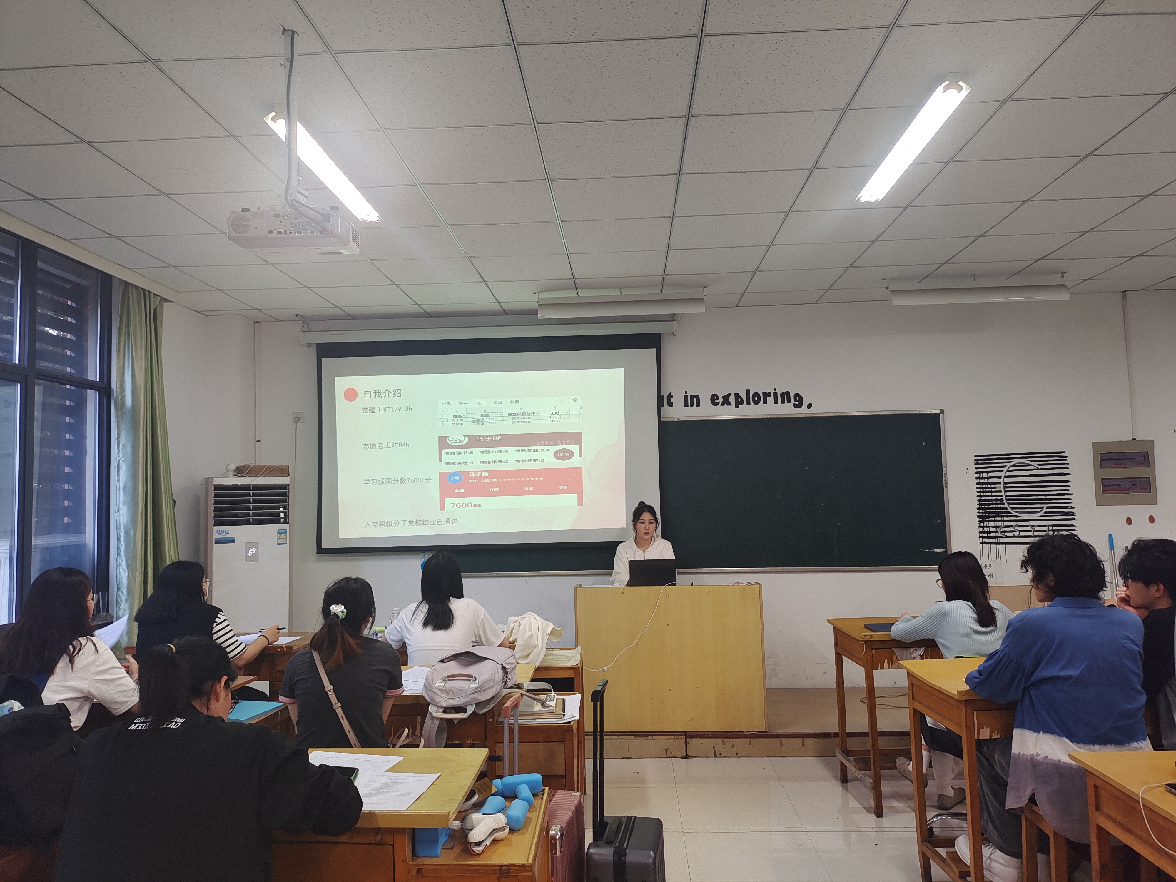 会上7位答辩同学依次通过PPT展示方式讲述个人情况、入党动机及努力方向,并表明加入党组织的决心,同时回答党总支委员、支部书记及学生党员提出的问题。在答辩结束后,全体党员对答辩同学的表现进行打分,并由支部书记与支委讨论确定最终排名。