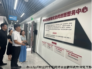 仪式后,与会嘉宾共同参观了浙江经济职业技术学院中小企业数智化协同创新服务中心。该中心是企业与校方深化合作的又一重要载体,其定位为:立足"服务浙江经济",打造校企协同创新枢纽,聚焦中小企业数智化转型痛点,构建"教育链-人才链-产业链"三链融合生态,赋能区域经济高质量发展。
