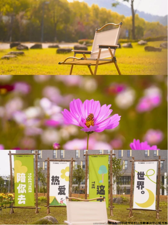 秋天的阳光醇厚柔润,在农场的土地上闪闪发光。校园东南角的波斯菊盛大开放,粉白的花海是秋天的生命力,它象征着浙科学子们的勃勃生机。本期寿师傅生活课堂,在后勤老师的带领下,师生们齐心协力,用心搭建了一片小憩营地,精致的氛围灯、休闲椅 、装饰物,为全校师生提供了休闲新去处。