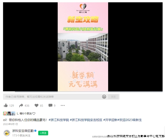 一、“暖心公寓”推出系列视频,主题涵盖开学季、健康生活、搬迁季、用电安全、宿舍安全意识等,视频内容紧跟实时,贴心校园生活,深受学生喜爱。