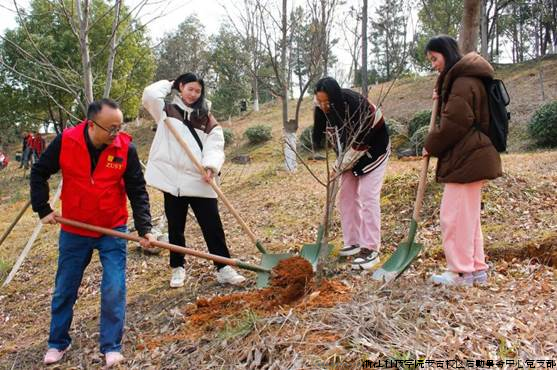 植树活动有序开展,现场氛围活跃,师生纷纷撸起袖子,一起挥锹铲土、扶植苗木、培土压实,挥铲之间,一棵棵新苗迎风挺立,传递着春的生机和力量,为美丽的校园再添新绿。