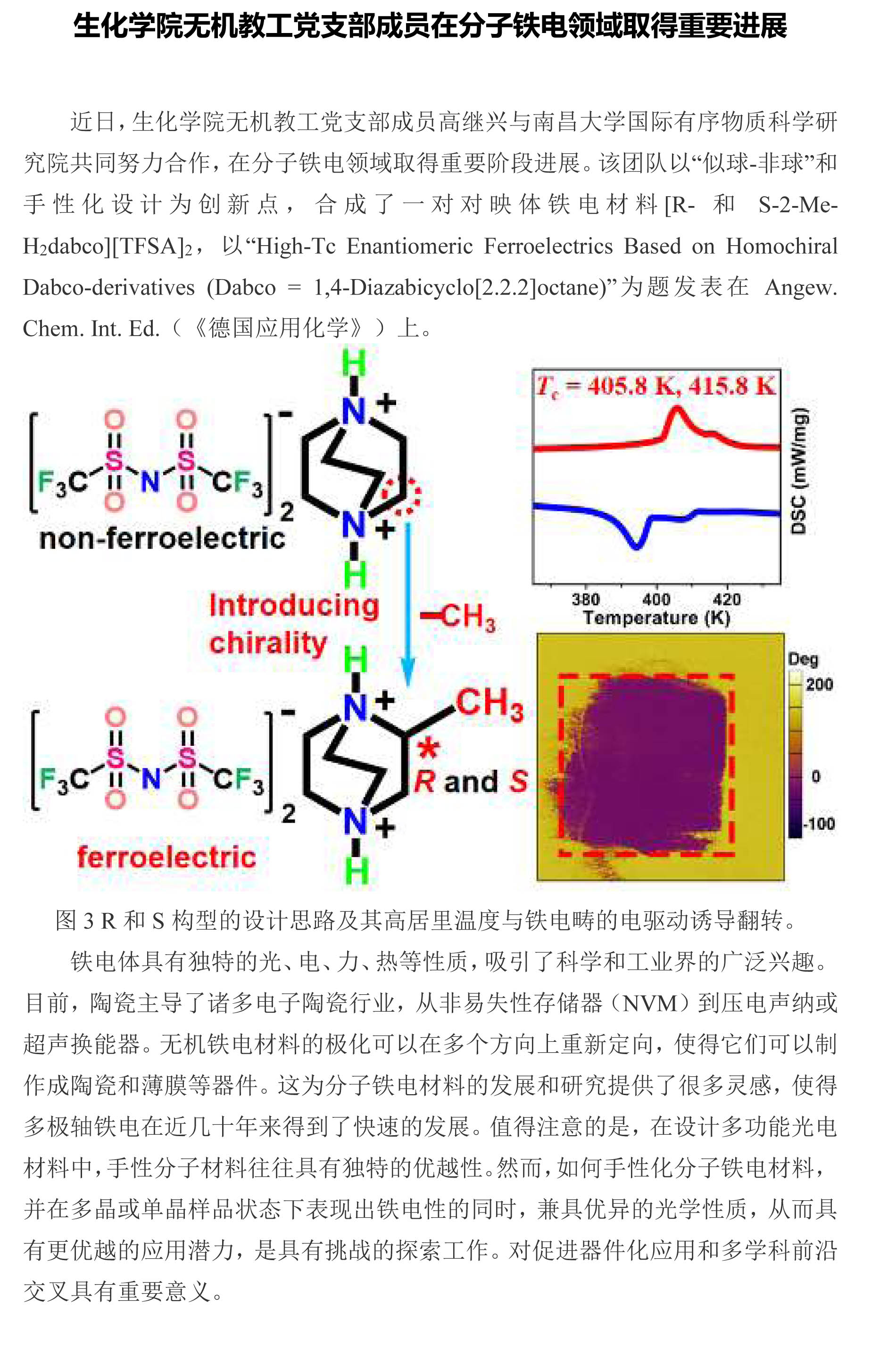 生化学院无机教工党支部成员在分子铁电领域取得重大进展。