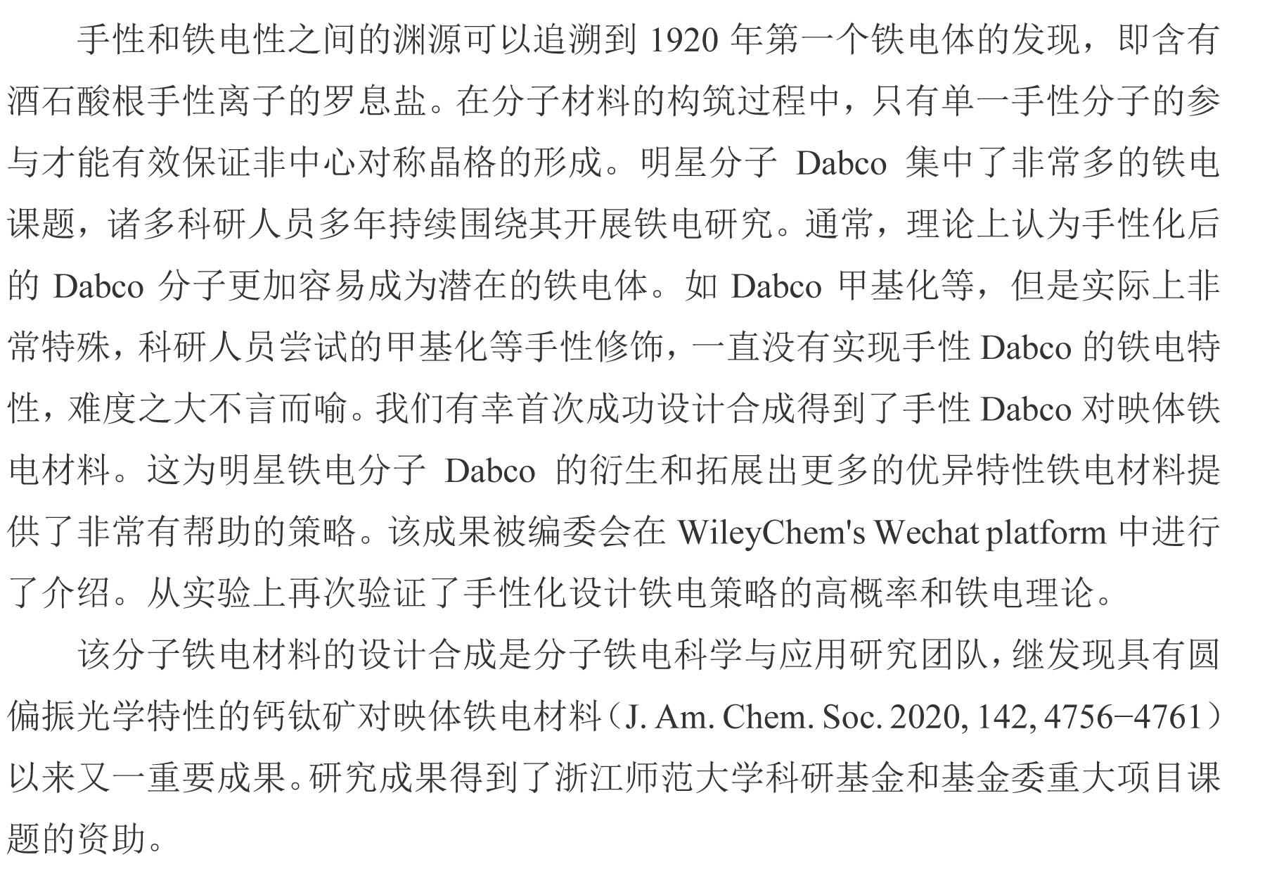 生化学院无机教工党支部成员在分子铁电领域取得重大进展