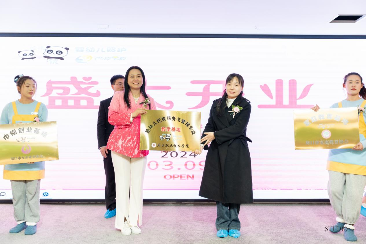 付晓东院长一行在早教中心王欣欣院长和工作人员的陪同下认真参观了园区各项设施,详细了解了早教中心的发展历程、企业文化及经营情况,就岗位需求、人才供给、就业实习等事宜,开展了深入交流,表示今后要深入推进校企双方的学科链、产业链、人才链深度融合,张华珍并为其授周口职业技术学院婴幼儿托育服务与管理专业教学基地牌匾,合作共赢谱新篇。