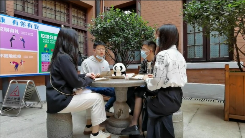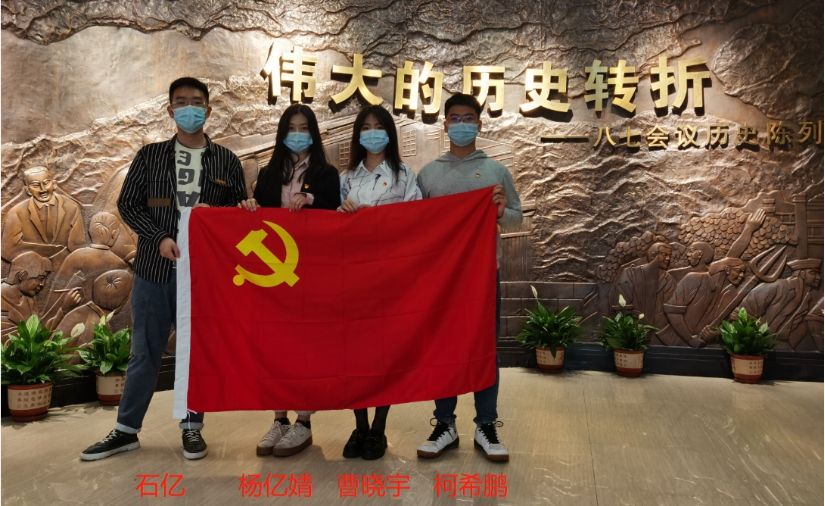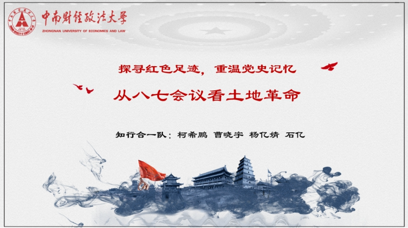 知行合一队汇报的主题为“从八七会议看土地革命”(见图1),组员分别包括柯希鹏、石亿、杨亿婧、曹晓宇(见图2)。