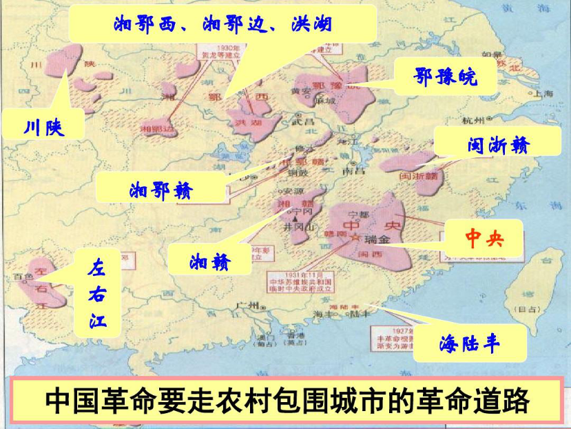 共产党在农村打土豪分田地,办学堂开民智。在这里,中国共产党与农民群众紧紧联系在一起,也获得了广大群众的支持。人民群众纷纷加入共产党和红军为广大群众的利益而战。以我家乡湖北省阳新县为例,在革命期间就流传着“小小阳新,万众一心,要粮有粮,要兵有兵”的口号。