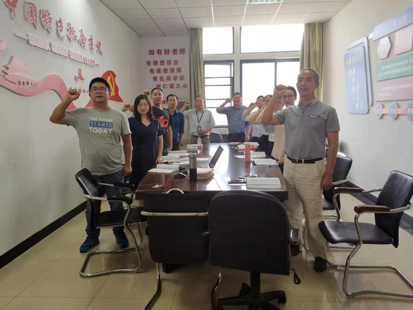 灿烂的秋日阳光中,我们开始了新学年的第一次主题党日活动。吴卫华副书记带领同志们宣读入党誓词,并学习了《党章》第八章。支部成员现场缴纳2019年7-9月的党费。