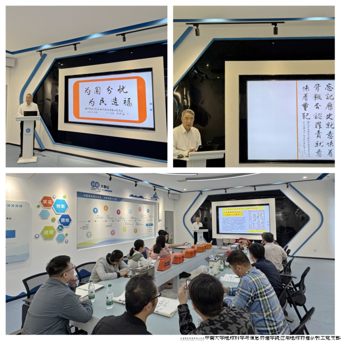2025年4月8日,中国工程院院士、著名地球物理学家何继善教授为中南大学地球科学与信息物理学院应用地球物理系教工党支部带来一堂深刻而生动的党课。在抗日战争胜利80周年之际,何院士以自身经历和家国情怀,激励支部成员赓续民族精神,勇担时代使命。
