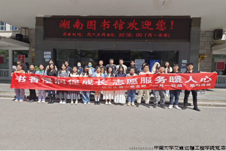 为充分发挥党员的先锋模范作用,深入践行社会主义核心价值观,推动志愿服务活动的常态化、制度化,3月29日下午,交通运输工程学院研究生第一党支部前往湖南省图书馆开展“一月一公益”系列活动之“书香浸润促成长,志愿服务暖人心”志愿服务活动。