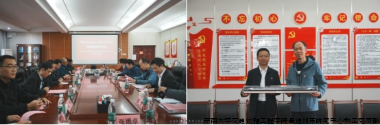 党建引领,共话发展新篇章。上午9时,活动在中南大学天心校区高速列车研究中心北楼201党员会议室正式拉开帷幕。中车青岛四方机车车辆股份有限公司国家工程技术研究中心副主任、第二党支部书记陈大伟和中南大学交通运输工程学院党委副书记李苑首先就企业与学校党建工作成果与经验作专题汇报。双方围绕基层党组织建设、党员教育管理、党建与业务深度融合等议题展开深入交流,气氛热烈。座谈会上,中车青岛四方机车车辆股份有限公司还向学院捐赠了时速600公里高速磁浮列车模型,这也是校企双方在科研合作与人才培养方面紧密联结的重要代表作。本次会议由交通运输工程学院党委委员、极端流动力能前沿科学中心主任、高速列车研究中心教工党支部书记鲁寨军主持。