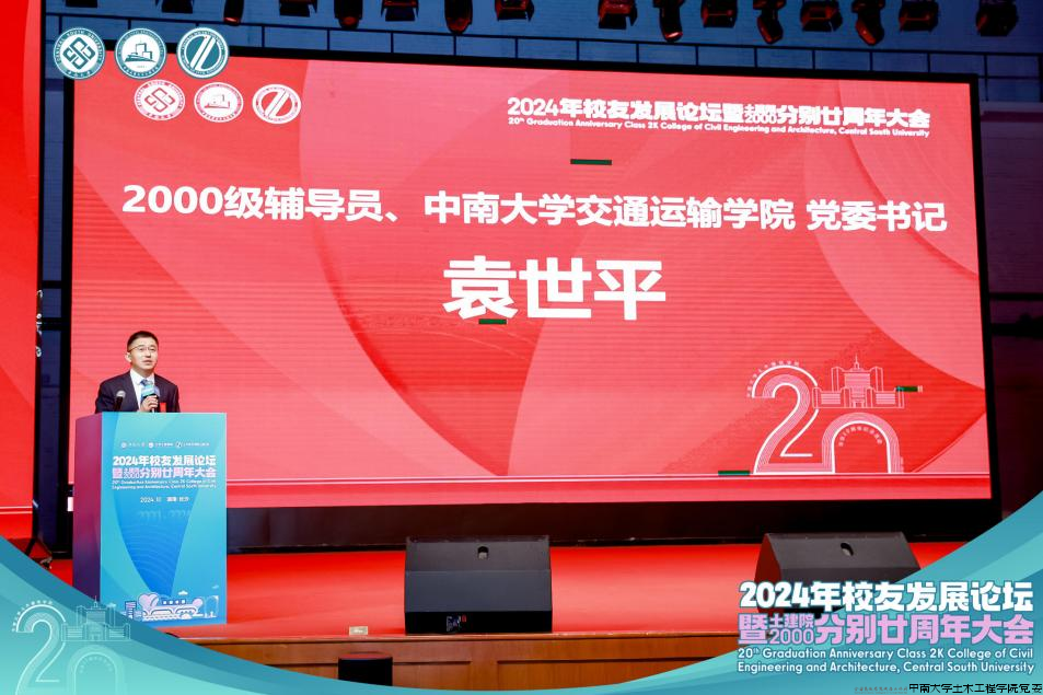 桃李芬芳忆风华,思源致远谋发展。2024年中南大学土木工程学院校友发展论坛暨土建院2000级分别廿周年大会的成功召开,为校友们提供了交流合作的平台,也为学院学科发展注入了新的活力。土木工程学院将继续以“共生、共情、共赢、共荣”为宗旨,积极构建校友和学院协同发展、共同提升的高质量发展共同体,为推动中国式现代化建设贡献力量!