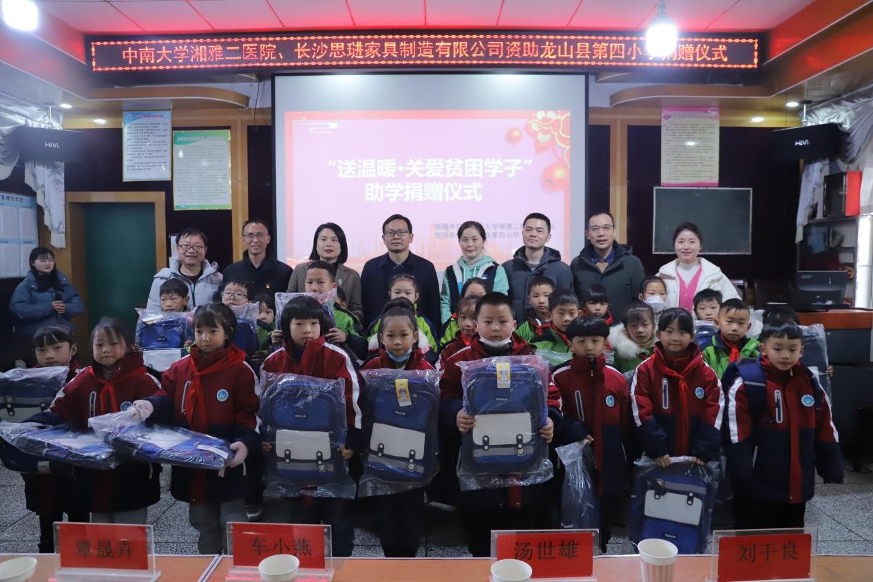 此次捐赠活动不仅为学生们带来了崭新的课桌椅和“爱心”书包,更为他们带来了无尽的温暖和鼓励。 活动后,中南大学湘雅二医院放射科承诺将继续支持龙山县第四小学贫困学子,此次捐赠活动也为学校的发展提供了有力支持。学校将常怀感恩之心,砥砺办学品质,努力办好让人民满意的教育。