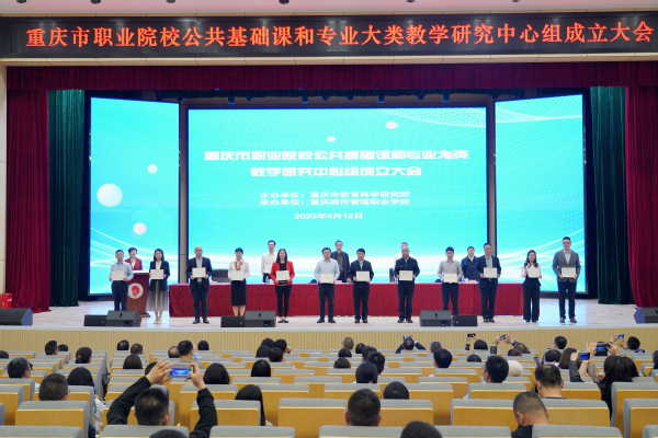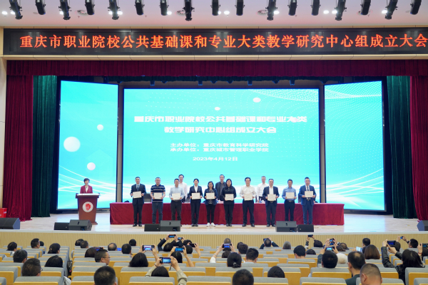 4月12日,由市教育科学研究院主办,我校承办的重庆市职业院校公共基础课和专业大类教学研究中心组成立大会在学校综合楼多功能厅隆重举行。教育部职业教育发展中心副主任黄辉,市教委副主任杨卫军、市教科院院长蔡其勇、市教科院职成教所所长胡彦,我校党委书记邹晓波,党委副书记、校长邓明国等领导出席大会。大会由市教科院职成教所所长胡彦主持。