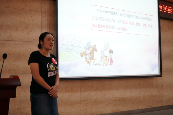 经过前期各教研室的初赛,共推选出7名教师参加决赛。比赛要求从教材中选择20分钟的内容,以出色的语言表达、精致的多媒体教学课件以及丰富的实践经验,理论联系实际,将课程知识进行生动展现。石静老师以一个人、一张图、一个视频“三个一”导入,谈论了中国如何实现社会主义现代化,建成社会主义现代化强国的问题;胡可娜老师以人与自然和谐共生为主题,从各美其美、美人之美、美美与共三个方面探讨如何建设美丽中国;蒋弦老师以我校学生陈科霖创业为例,对改革创新的时代精神进行了深刻解读;刘炼老师以做担当民族复兴大任的时代新人为题,号召新时代青年奋进向上;严红老师详细讲解了爱国主义和爱社会主义的统一;林玲老师阐释了中国梦是每一个人的梦,坚持普通理想,凝聚复兴力量;任甜甜老师围绕改革开放四十年,解读了改革开放理论。比赛过程中参赛选手们或侃侃而谈,或娓娓道来,或激情澎湃,各展风采。