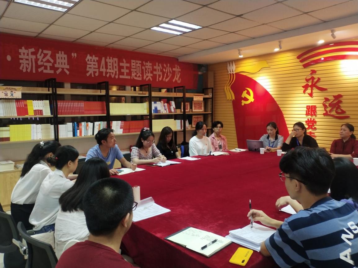 为深入贯彻学习习近平新时代中国特色社会主义思想,传承时代精神,助力青年大学生坚定正确的政治方向,增强“四个意识”,坚定“四个自信”,做到“两个维护”,促进广大青年学生增强个人的奉献意识、服务意识,9月18日,我校习近平新时代中国特色社会主义思想学习会在党建育人基地开展“新时代·新经典”第四期主题读书沙龙活动。马克思主义学院直属党支部书记唐丽、青年教师江优优、盛星和学习会骨干成员参加了读书会,活动由青年教师刘世凤主持。
