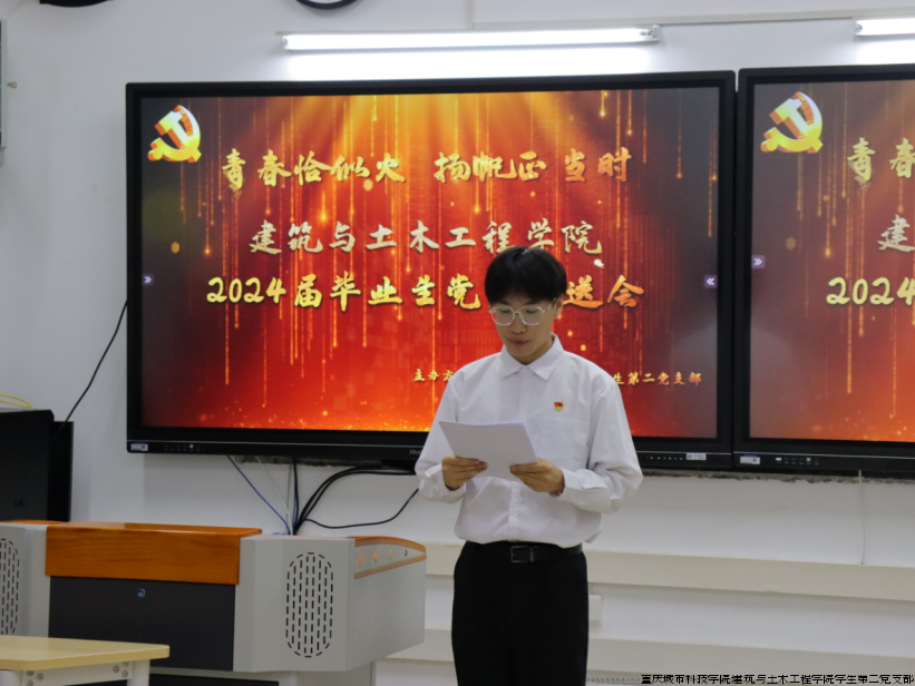 岁月不居,时节如流,离别的钟声已敲响,毕业的步伐渐渐踏近。为表达支部对2024届毕业支部党员的深深祝福和殷切期望,鼓励他们在新的征程不忘初心,砥砺奋进。建筑与土木工程学院学生第二党支部于2024年5月23日中午12:30在一教316举办以“青春恰似火,扬帆正起航”毕业生党员欢送会。建筑与土木工程学院党总支组织员、学生第二党支部副书记魏姗姗,毕业生党员辅导员任南桦、黄学佳,支部全体党员以及发展对象参加此次欢送会,本次欢送会由王彦杰同志主持。