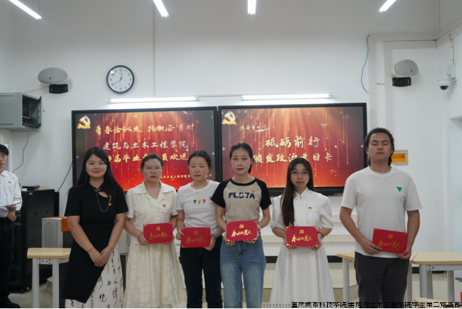 会议伊始,在支部回顾视频中毕业生党员们回忆起在支部的点点滴滴,百感交集、感慨万千,纷纷表示已铭记党支部对自己的谆谆教诲,在今后的学习和工作中都将以更高的要求和更严格的标准鞭策、激励自己。随后,全体党员在魏姗姗同志的带领下重温入党誓词,在铿锵有力的誓词声中,同志们回忆入党之时,叩问入党初心。誓词的一字一句都在要求毕业生党员们不忘初心、牢记使命,勇担时代重任,踏实努力奋斗。紧接着,魏姗姗同志为毕业生党员颁发政治生日贺卡,激励毕业生党员们谨记入党初心,把使命扛在肩上,把责任落在脚下,坚定不移跟党走,矢志不渝听党话!
