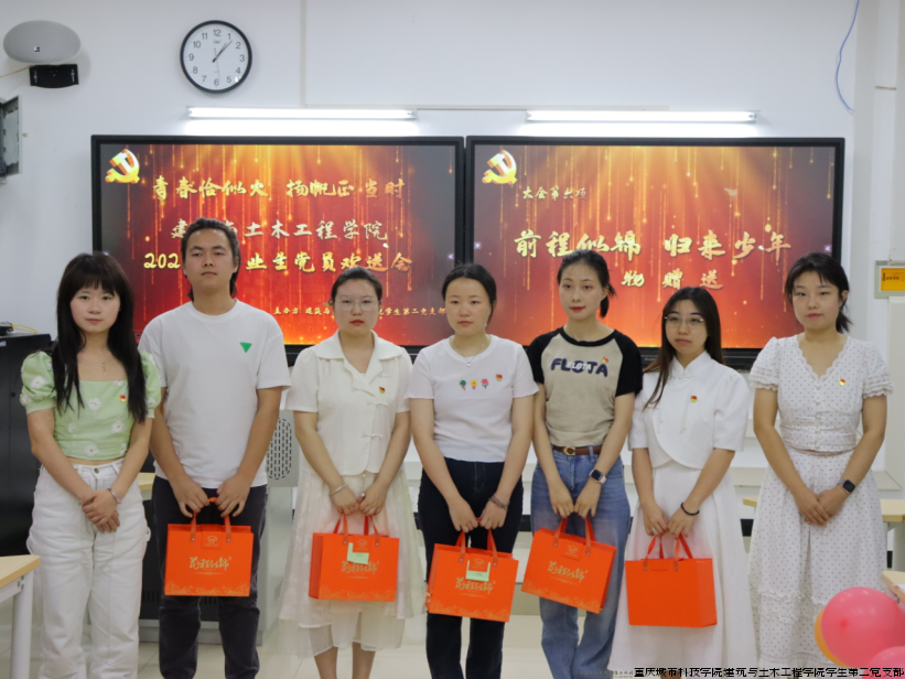 任南桦和黄学佳老师将精心准备的毕业礼物送到毕业生党员们手中,这份礼物寄托了辅导员对他们的深厚情感与期望,也表达着对他们即将离开校园,步入社会的不舍与祝福。