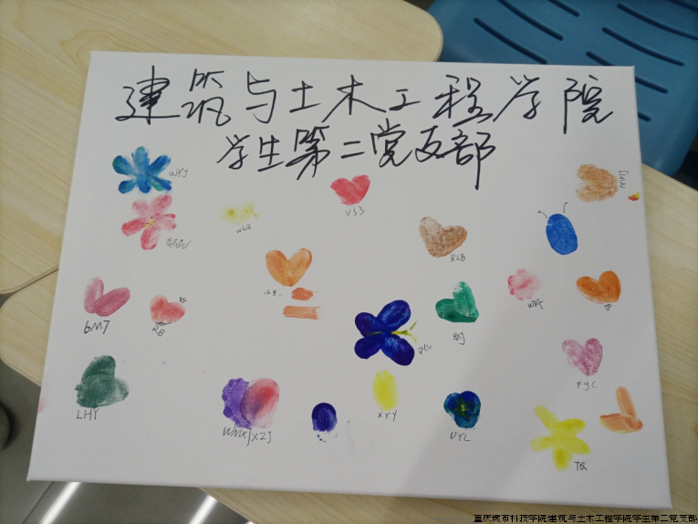 在DIY手指画趣味游戏中毕业生党员们纷纷发挥创意,用手指在画布上绘制出各种图案和色彩,摁下的手指印是他们为自己五年青春画下的句号,也是他们开启人生新阶段的开始。