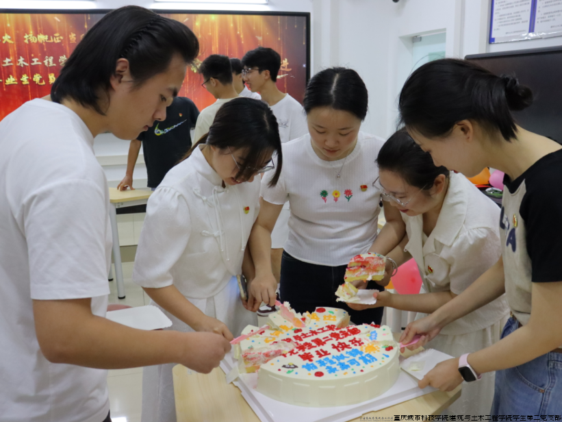 欢送会随着祝福蛋糕入场渐渐落下帷幕。少年风华正茂,挥别过往,奔赴下一场诗和远方,祝2024届毕业的支部党员们以梦为马,不负青春、不负韶华、云程发韧、千霄凌云、用自己的力量建设祖国,将心中的愿望化为现实,不忘初心,砥砺前行,发挥出党员的先锋模范作用,奋斗出当代新青年的优秀面貌。