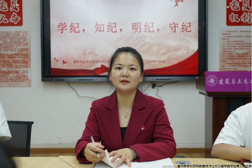 随着讨论的结束,发展对象都踊跃分享此次讨论的收获与心得。其中张祖霖分享说:“我们要时刻牢记‘学纪、知纪、明纪、守纪’,以实际行动践行这一要求,时刻提醒自己保持清醒的头脑和坚定的立场,为成为一名合格的党员打好坚实的基础。”刘鑫谈到:“学纪是基础,知纪是关键,明纪是目标,守纪是根本。我们要深入理解其内涵,并始终坚守党的纪律。”刘雨涵说:“对于我们学生来说,‘学纪,知纪,明纪,守纪’这四个词不仅是一个不断深化的过程,也是一个不断循环的过程,只有这样,我们才能逐渐构建起自己的纪律观念,形成良好的行为习惯,为未来的学习和生活奠定坚实的基础。”王思琪分享到:“在入党誓词以及党员的义务中,都谈到了我们要遵守纪律,所以在我看来,在我们成为党员的路上,‘学纪,知纪,明纪,守纪’不仅是理论学习的重点,更是我们实践行动的指南。”