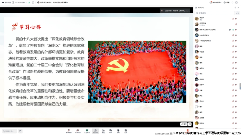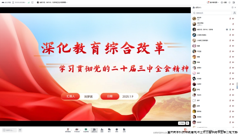 建筑与土木工程学院学生第二党支部于2025年1月9日12:25在线上开展以“深化教育综合改革”为主题的组织生活