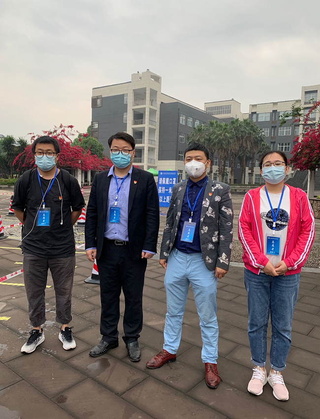 第一道门,由唐明良、李立成、吴钰涵几位党员教师坚守,确认同学身份,验证返校审批;第二道门,由辛小江、刘伟等几位党员教师监督,负责学生的行李消毒工作,将病毒阻挡在校园之外;第三道门,由颜烨、张强、王瑞雪等几位党员教师巡查,负责秩序维护;第四道门,由张玉林、谢金利、牛苗苗等几位党员老师执行,检测同学们提问工作;第五道门,由赵善龙等几位党员教师复查,负责引导同学入校。