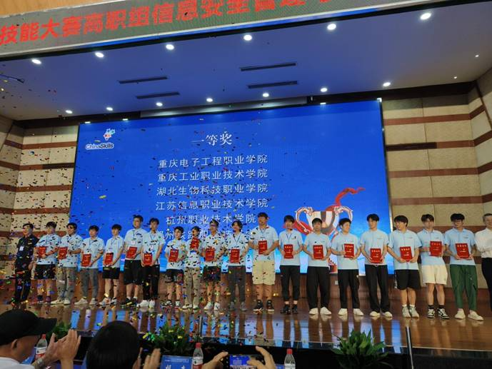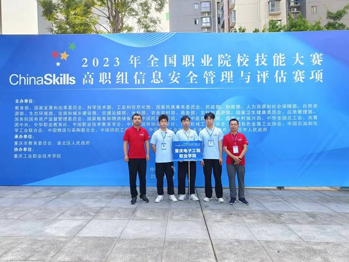 8月20日至21日,2023年全国职业院校技能大赛高职组“信息安全管理与评估”赛项在重庆工业职业技术学院成功举办。来自全国32个省、直辖市、自治区的62支参赛队伍同台竞技,经过两天的激烈角逐,我校人工智能与大数据学院鲁先志、何倩两位老师的指导的税一卫、刘满、杨青山三名同学,获得团体一等奖,全国第一名的优异成绩。