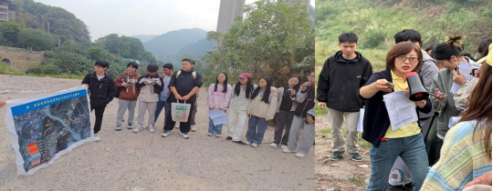 2024年10月26-27日,2023级人文地理与城乡规划专业的学子们在支部党员蔡进、陈帅等老师的带领下圆满完成地学基础实习。地学基础实习是人文地理与城乡规划专业实习体系的第一个重要实习,属于课程群实习类型。它是课堂教学的延续,不仅丰富拓宽知识领域,也为后期城乡规划课程学习夯实基础。