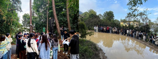 10月27日,学生们迎着清晨的第一缕阳光开启了第五个观测点:山地黄壤认知、第六个观测点:缙云山植物样方及第七个观测点:特色民宿实习。陈帅老师先总体介绍了世界土壤的分布规律,土壤的剖面,由大即小讲解了地学基础实习过程中所遇到的土壤类型。之后学生们在老师们的指导下分组进行植物样方测定,从测量数的胸径到统计样地内各种树木的个体数,同学们认真测量估算收获颇丰。随后老师们结合缙云山清欢渡民宿案例,阐释了民宿的基本特征和民宿规划设计的基本要领,强调了要打造有温度的民宿,注重局部设计。最后,实习队伍奔赴了一场自然的浪漫:爬山,体验了缙云山的自然风光,领略了其佛教建筑,康体健身项目。下午1点半,同学们参观了重庆自然博物馆。“世界因多姿多彩的物种而精彩,每一个物种的消失,都是人类走向孤独的脚步”博物馆的标语让同学们思考起了地球演化过程,地质历史变迁,生物进化理论,岩石的奇妙等。六个专题展厅,是一场神奇的时空对话,是一场自然的探索之旅。