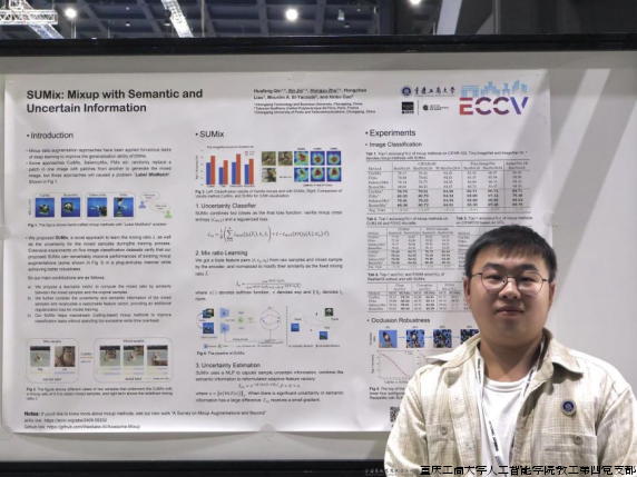 近日,我校国合基地和人工智能学院联合培养的2022级软件工程专业研究生金鑫、朱泓宇在第18届欧洲计算机视觉学术会议(ECCV 2024)上发表了题为“SUMix: Mixup with Semantic and Uncertain Information (ECCV 2024)”(SUMix: 包含语义信息和不确定信息的混合)的研究成果,该论文为计算机视觉数据增强领域做出了创新贡献。会议于今年9月28日至10月4日在意大利米兰举办。会议期间,该研究工作受到了来自包括北京大学,牛津大学,清华大学,莫纳什大学,中国科学技术学院,美国东北大学等单位的关注和赞赏。