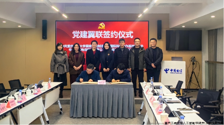 2024年12月5日,国合基地主任秦华锋率队赴中国电信南岸分公司开展党建联建专项活动,双方成功签署战略合作协议。本次活动以"党建翼联·智创未来"为主题,深入践行党的二十大精神,通过构建"党建+科技"融合创新机制,开启校企协同发展的新模式,探索新时代党建共建与产教融合的新路径。