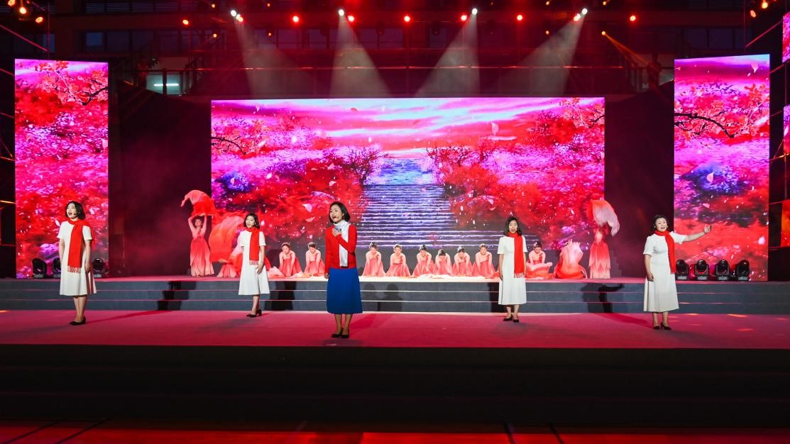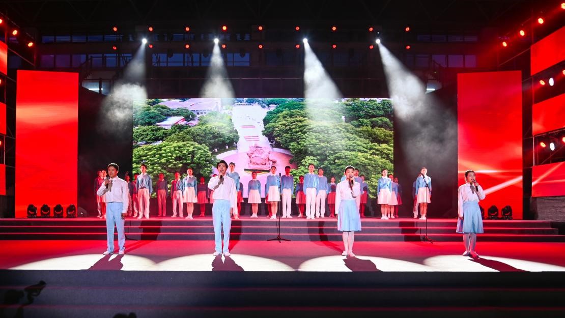 最后,全体党委委员合唱《没有共产党就没有新中国》,至此,学校“七一”表彰暨主题教育“再读红岩”汇报展演在激情澎湃的歌声中圆满结束!
