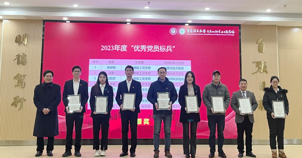 2023年“党员标兵示范岗”的优秀代表就创建情况向大会进行了展示。校党委副书记张晓洪为8位获得年度“优秀党员标兵”的同志颁奖,学院党政领导分别为20名年度“学习强国”学习标兵和2个学习先进党支部进行了颁奖。计科系教工党支部朱小飞同志获评“优秀党员标兵”,计科系教工党支部获评“学习先进党支部”。