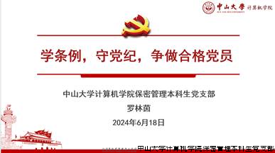 开展党纪学习教育,是加强党的纪律建设、推动全面从严治党向纵深发展的重要举措。2024年4月至9月,保密管理本科生党支部聚焦深入学习贯彻新修订的《中国共产党纪律处分条例》,结合支部特色,扎实开展党纪学习教育。