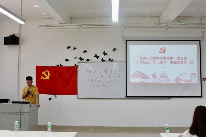 2019年9月29日下午16:00,经济与贸易学院学生第一党支部在格物楼2B501组织召开了“不忘初心,牢记使命”主题教育学习交流会。参会人员主要有经济与贸易学院学生第一党支部书记黄小润老师以及支部成员。本次大会由赵家浩同志主持。