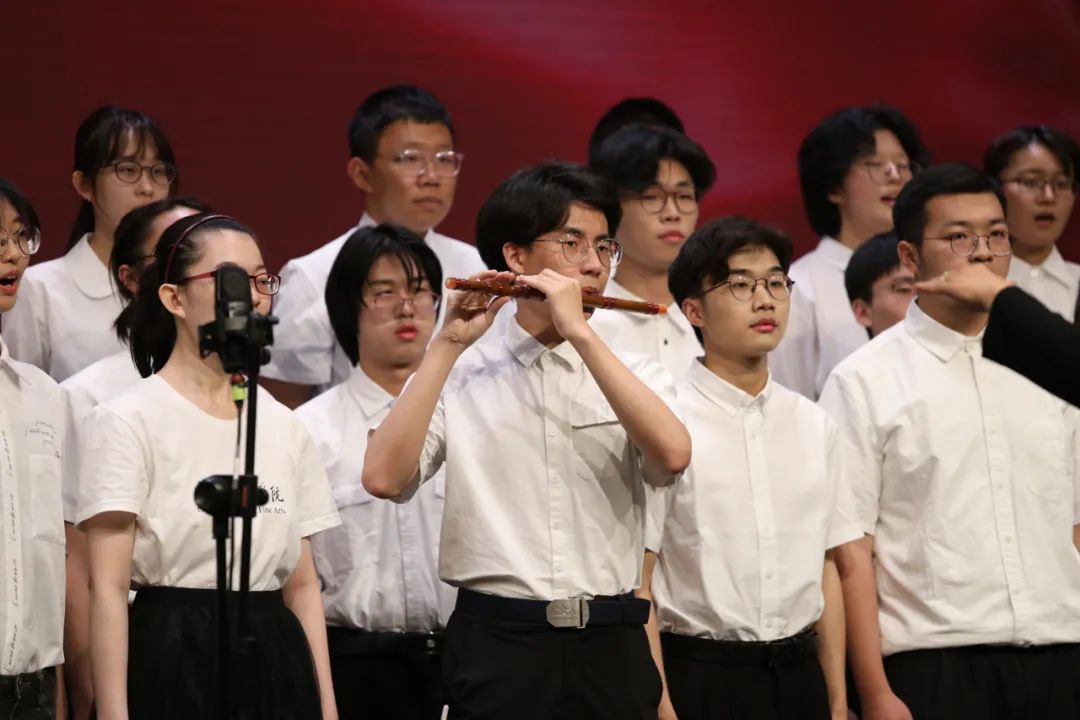 党委书记高洪在致辞中表示,老师和同学们用激情的歌唱、深情的朗诵、新颖的表演,把我们带到了党领导人民为建立新中国进行艰苦卓绝斗争的峥嵘岁月,把我们带到了党领导人民为建设新中国艰苦奋斗的火红年代,把我们带到了党领导人民为实现现代化接续奋斗的崭新时代。我们的革命前辈唱着这些歌英勇牺牲、前仆后继、无私奉献,今天中央美院师生从心底再唱这些歌,要把我们的艺术创作描绘在祖国的大地上,描绘在人民群众的幸福生活中,描绘在全面建设社会主义现代化国家的壮丽篇章中!光荣与梦想,使命与责任,我们要继续努力奋斗!