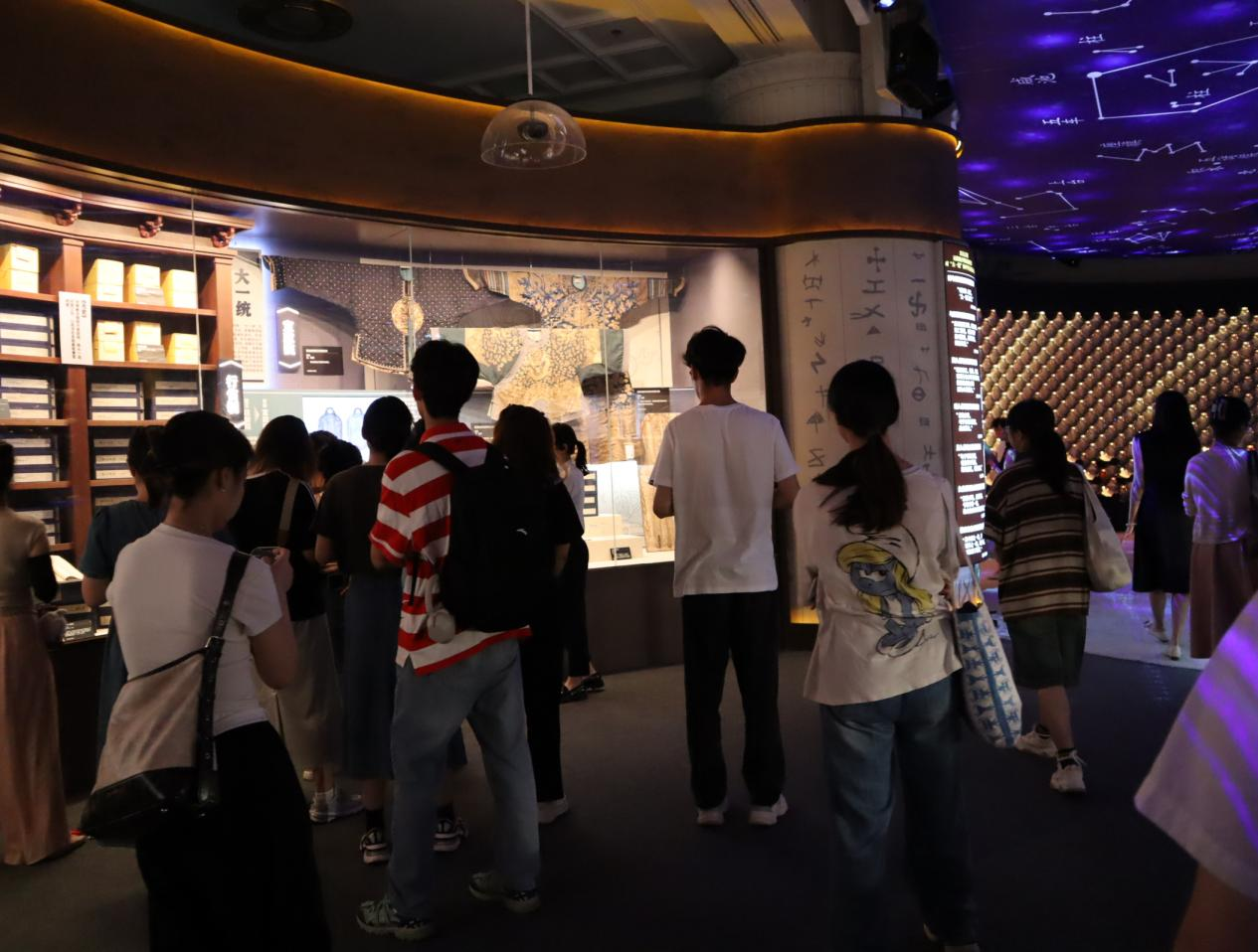 随后,研学团前往民族文化宫,参观铸牢中华民族共同体意识文物古籍展。同学们看到见证各民族交往交流交融历史的唐朝文成公主带到吐蕃的琴与长鼓,汉文、满文、蒙古文等3种文字版本的《孟子》等,以及展现中国共产党成立至今一脉相承的中华民族大团结深邃思想和丰富实践的一系列珍贵文物和资料。从第一单元的“大一统”到第二单元的“大交融”再到第三单元的“大团结”,同学们体会到了中华文明的连续性、创新性、统一性、包容性以及和平性。