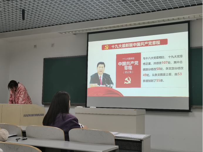 活动详细强调了十九大党章修改的重点内容以及十九大党章的意义。与十八大党章相比,十九大党章修正案,共修改107处,其中总纲部分修改58处,条文部分修改49处。从条文数量上看,由53条增加到了55条。