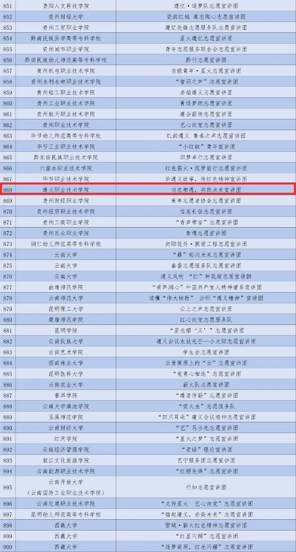 2024年全国大学生遵义会议精神志愿宣讲团入选团队