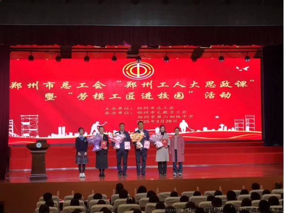 为深入学习贯彻党的二十届三中全会精神,大力弘扬工匠精神,2025年3月28日,郑州市总工会“郑州工人大思政课”暨“劳模工匠进校园”活动在郑州市第六初级中学音乐厅举行。郑州市五一劳动奖章获得者——会计学院教师党支部书记董昕以《把平凡工作做到极致就是非凡》为题,带来了一场精彩的主题宣讲。
