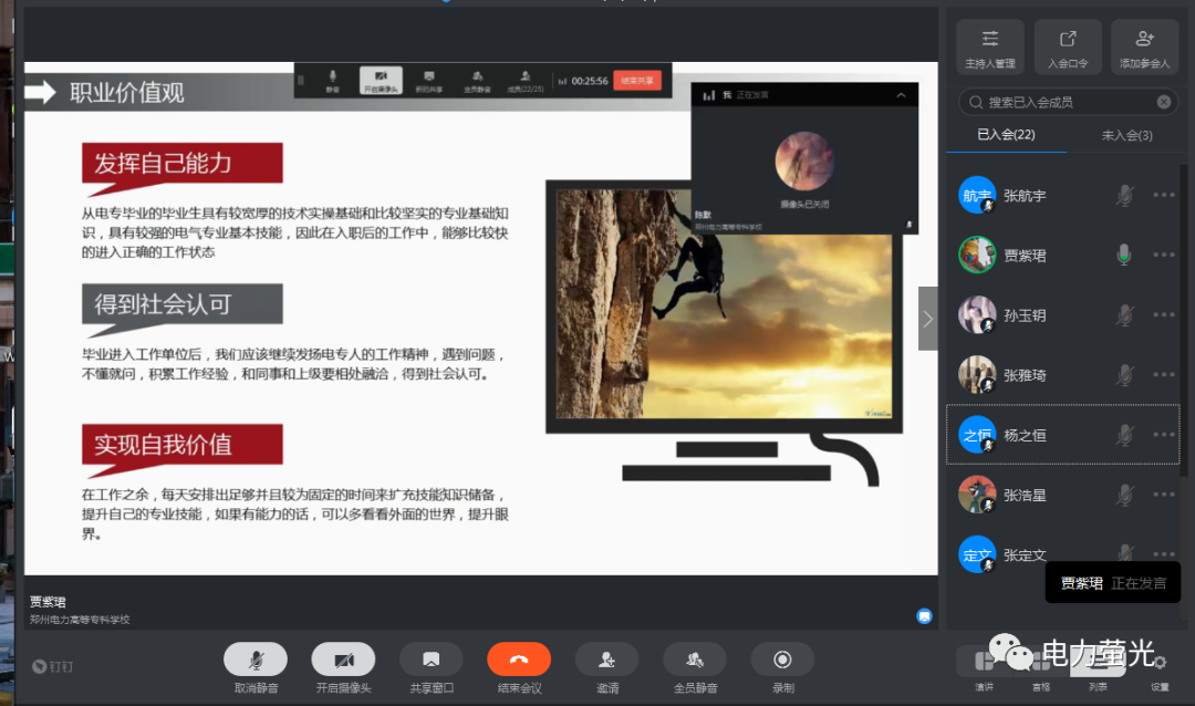 讨论会上,学生党员李昕颖分享了自己的职业规划路径:完成自考本科-考研-进入电力设计院-助理工程师-高级电力工程师,她认为在这个竞争激烈的社会中,没有较高的知识储备,未来很难掌握在自己手中。赵则煊认为良好的作息是高效率学习的充分条件,提升自我是成长成功的必要条件,只有合理进行时间管理才能高效率全方位的做好专升本以及国网考试的复习。