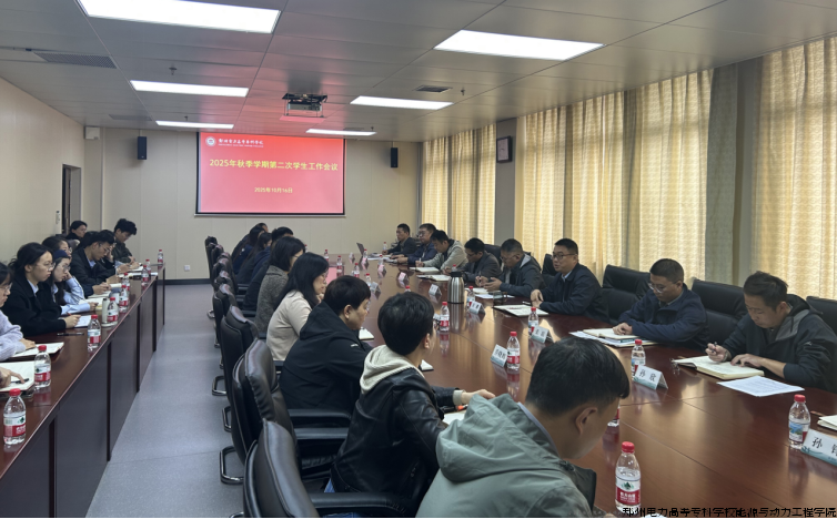 10月16日上午,学校在办公楼三楼会议室组织召开2025年秋季学期第二次学生工作会议,专题研究并部署推动“立德树人”与“五育并举”深度融合的学生工作新格局。党委委员、副校长黄鹏出席会议,学生处、招生就业处、保卫处、后勤服务中心和各学院负责人及全体辅导员参加会议。