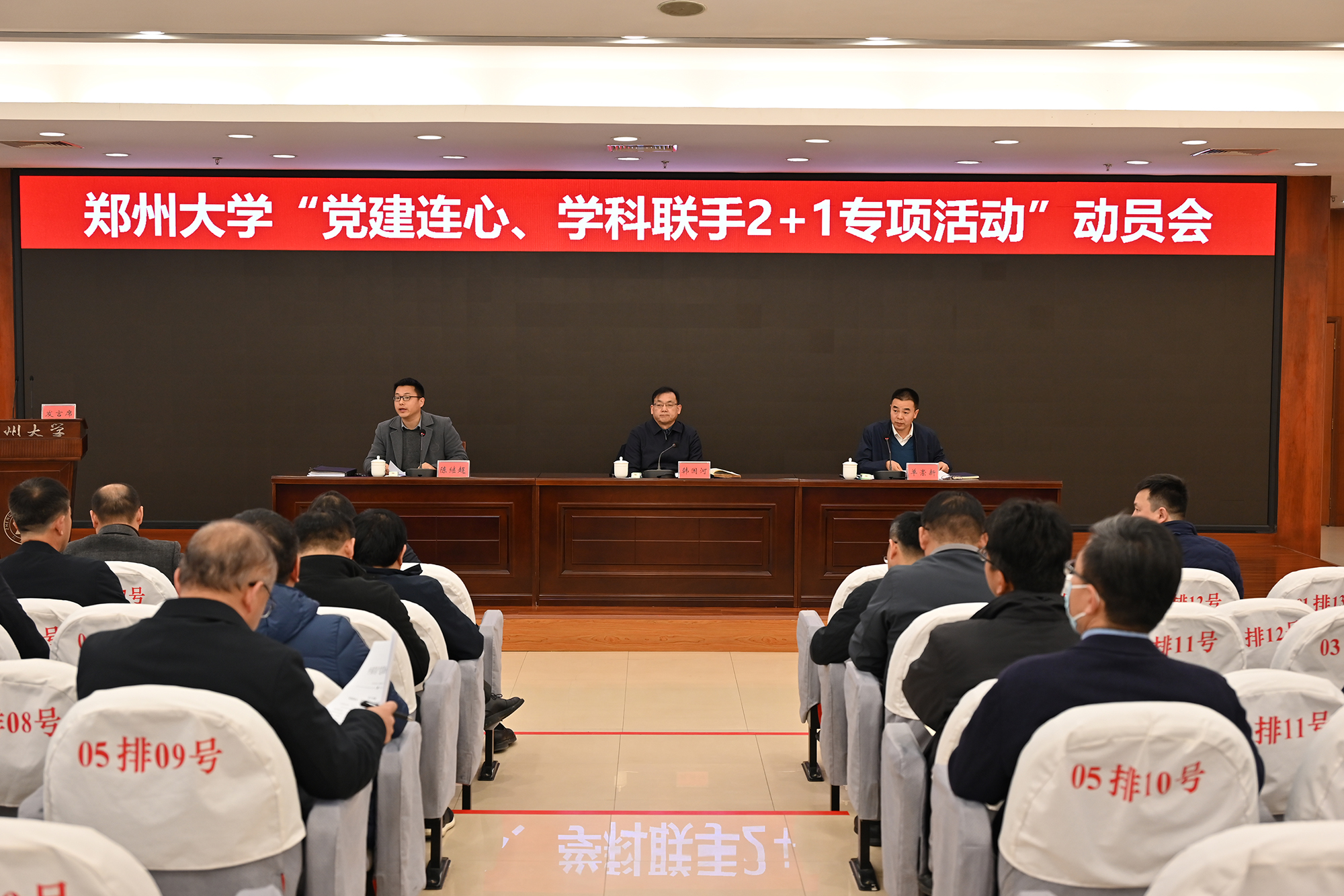为深入贯彻学校“学科建设年”部署要求,深入推进“221”战略和学科建设“三大计划”,充分发挥党建引领保障作用,以高质量党建推动学科高质量发展,2月26日,郑州大学召开“党建连心、学科联手2+1”专项活动动员会。校党委副书记、工会主席韩国河,副校长单崇新出席会议,参与共建的有关部门与重点学科建设单位负责同志参加会议。党委组织部负责同志主持会议。