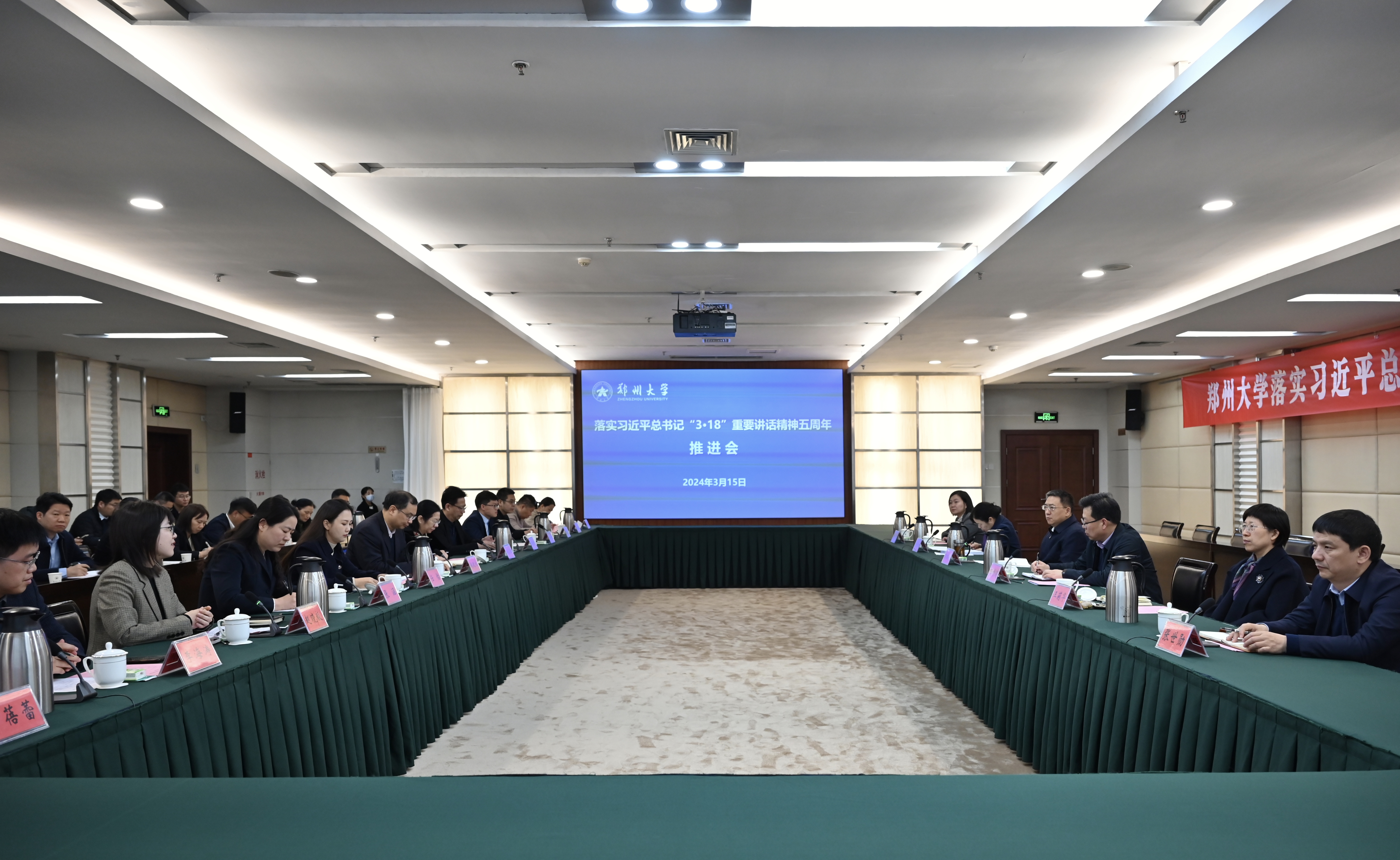 3月15日,郑州大学召开落实习近平总书记“3·18”重要讲话精神五周年推进会,校党委书记别荣海主持会议并讲话。校党委副书记王利国、副校长张倩红出席会议,学校相关职能部门、马克思主义学院主要负责同志,思政课教师和辅导员代表参加会议。