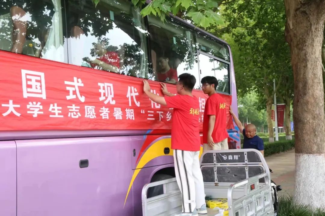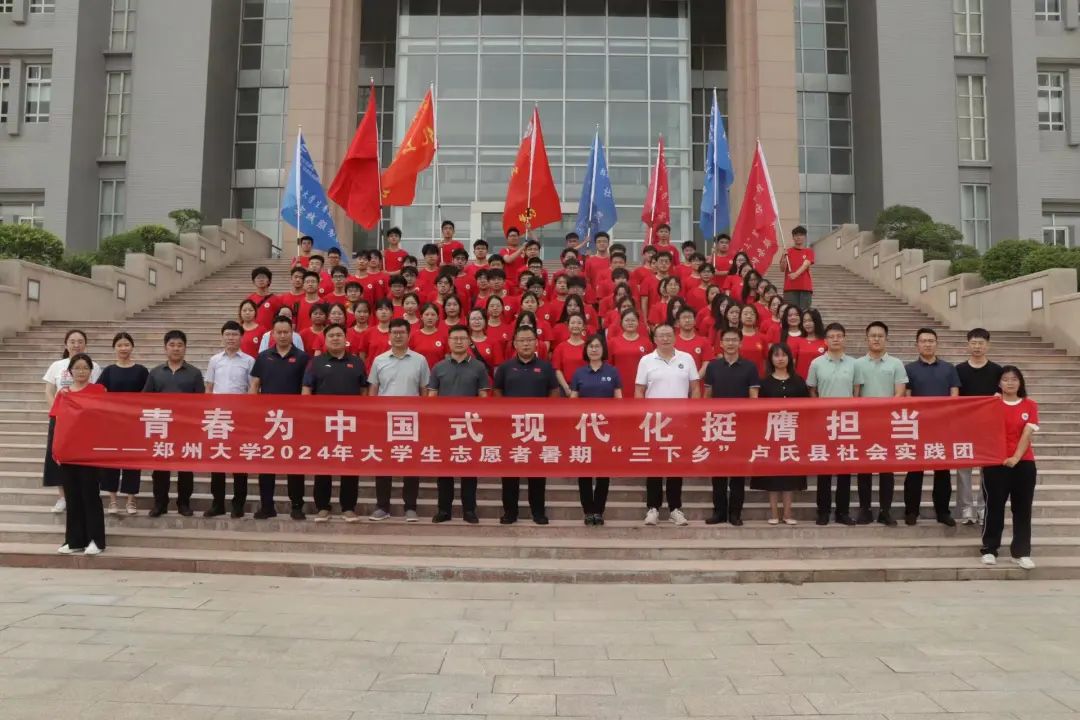 7月14日下午,2024年暑期“三下乡”社会实践活动出征仪式于郑州大学五星广场举行。校团委书记王红晓出席出征仪式。实践团队指导老师及全体实践队员参加出征仪式。同学们充满激情,斗志昂扬,高喊“青春为中国式现代化挺膺担当”的口号。