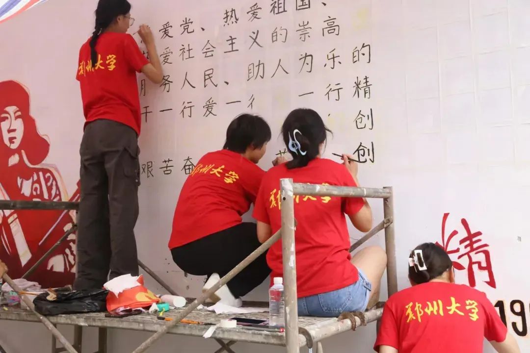 抵达卢氏县后,实践队员迅速投入到墙绘宣传工作中。在绘制过程中,实践团队员们充分发挥团结协作的精神,克服高温、蚊虫、大雨等困难,用心绘制每一幅作品。经过队员们几天的努力,原本单调的墙面摇身变为社区的亮丽风景线。居民们纷纷驻足欣赏,对队员们的作品表示肯定。