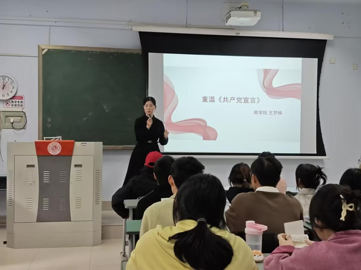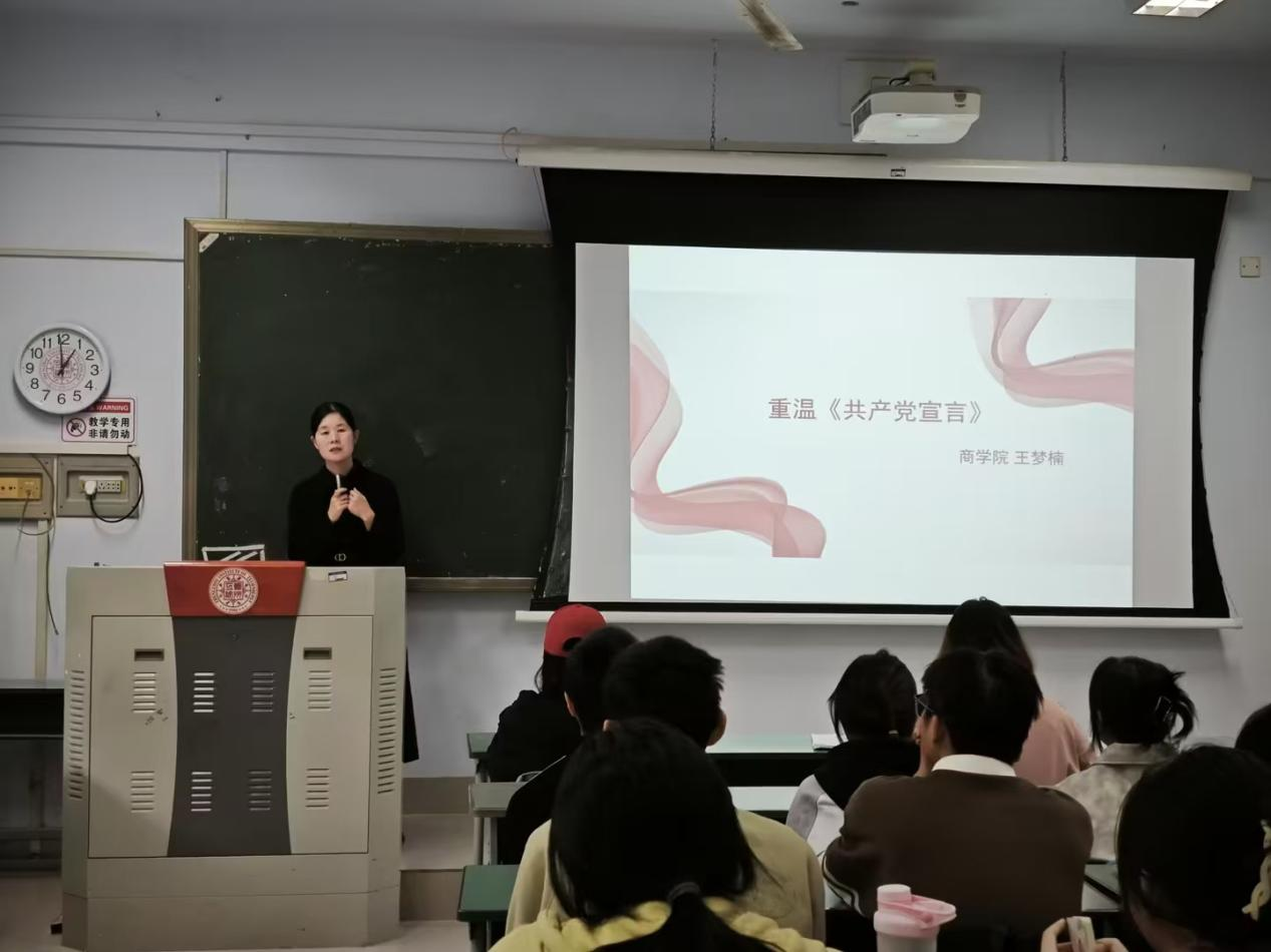 为深入贯彻党的教育方针,激励全体入党积极分子学习和传承党员坚定信念、勇担使命的精神,商学院于11月11日在博观楼1209教室成功举办了2024-2025学年第一学期的入党积极分子党课培训。本次党课的主题是“重温《共产党宣言》”,由物流管理系党员教师王梦楠主讲,共有65名入党积极分子积极参与。